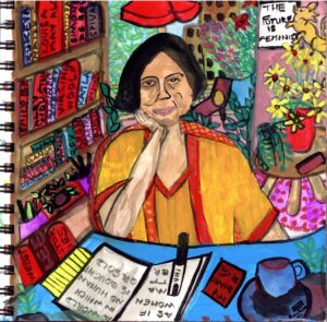 She lives between New York and Forbesganj, where she continues her activism—and paints in her late mother’s garden.