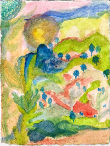 I am self-taught. I began to paint when I found two old brushes, a school art book from forty years ago and six bottles of paints in my childhood home in Forbesganj. during the Covid lockdown. My mother’s garden blossomed in the monsoon rain and the old neglected summer home in Forbesganj came alive again. I want to share that sense of life continuing.